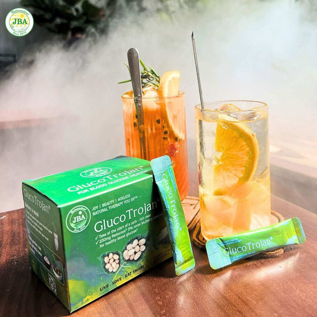 GlucoTrojan is a meal companion powder that can be added to foods or drinks or taken as a dietary supplement to help people maintain a healthier diet. Reducose, an active ingredient in GlucoTrojan, has been clinically proven in multiple studies to promote a healthier blood glucose and blood insulin response following a carbohydrate containing meal.