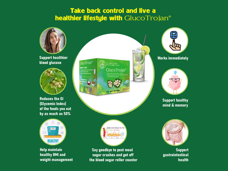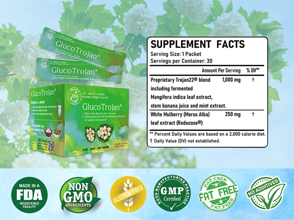 - GlucoTrojan® is a meal companion powder that can be added to foods or drinks or taken as a dietary supplement to help people maintain a healthier diet.