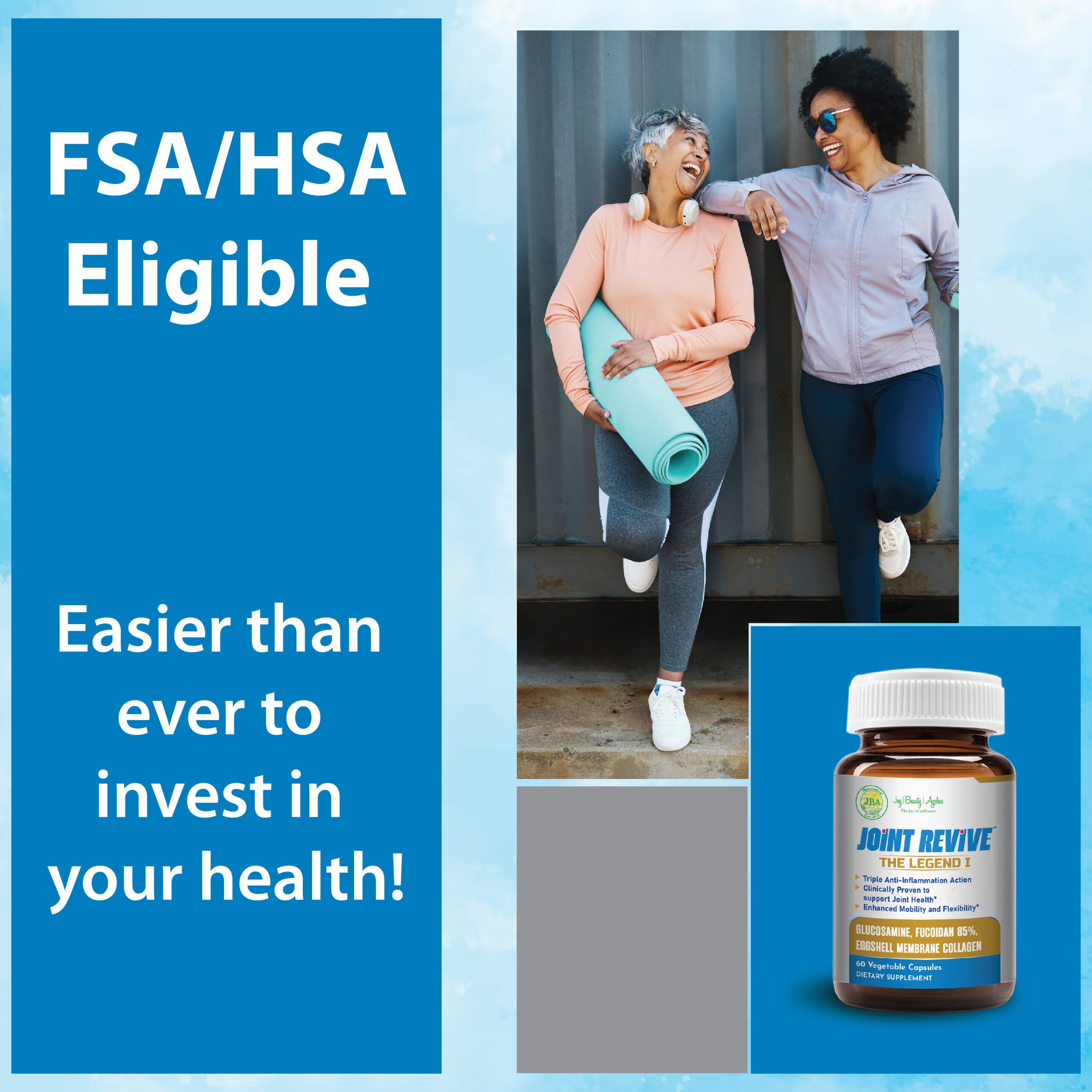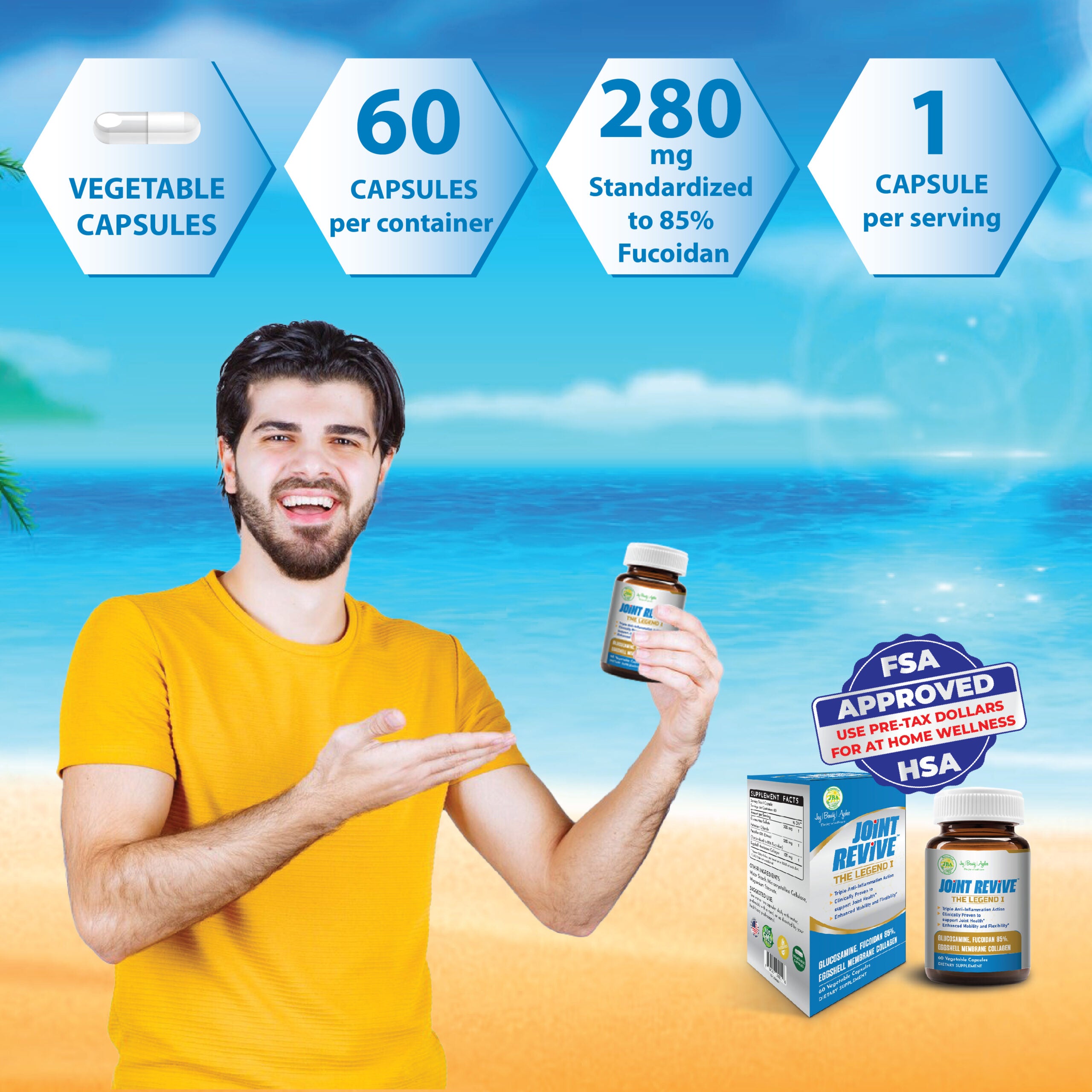 JBA™ Joint Revive with Fucoidan 85% is your ultimate solution for maintaining joint health and mobility. Formulated with a powerful blend of glucosamine, chondroitin, and Fucoidan 85%, this product is designed to support and nourish your joints, keeping you active and pain-free*.
