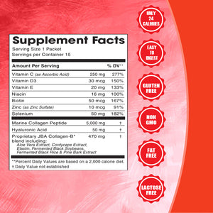 - 5.000 mg Marine Collagen Peptides để tăng cường độ đàn hồi và mịn màng cho da