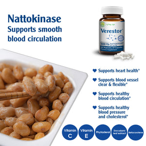 Verestor® chứa Nattokinase 2,000 FU, với lá dokudami giúp hỗ trợ các mạch máu khỏe mạnh*.
